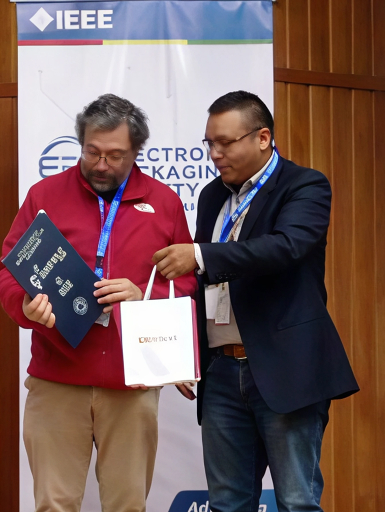 Los profesores Marcos Díaz y César Azurdia, ambos del DIE, se destacaron como oradores principales (Keynote speakers), cautivando a la audiencia con sus charlas magistrales. El profesor Azurdia presentó “Oportunidades del IoT Mediante Optical Wireless Communications”, explorando cómo las tecnologías ópticas inalámbricas pueden transformar el Internet de las Cosas (IoT). Por su parte, el profesor Marcos Díaz compartió “The University of Chile’s Collaborative Space Missions: Developing Research and Applications”, conectando la exploración espacial con avances en comunicaciones ópticas. Ambos académicos también enriquecieron el debate como panelistas en la discusión “Open Discussion on OWC-VLC”, fomentando un diálogo abierto sobre el futuro de estas tecnologías.