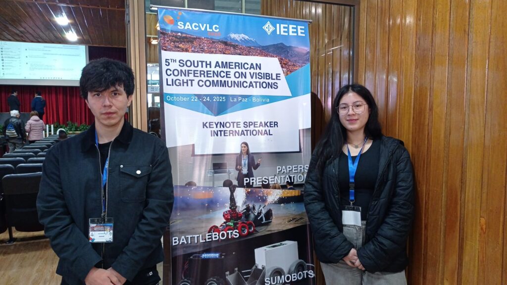 Fernanda Borja, estudiante de magíster, compartió su entusiasmo durante esta participación: “La conferencia fue increíble, un evento pequeño, pero lleno de energía, centrado en un tema que está despegando en Sudamérica y el mundo: las comunicaciones por luz visible. Fue fascinante ver cómo personas de Chile, Bolivia, Inglaterra y otros lugares trabajan en ideas similares. Hubo demostraciones, charlas y conversaciones entre sesiones, en un ambiente muy colaborativo. Presenté una aplicación de Android para desarrollar sistemas OCC con C++, un lenguaje más accesible para ingenieros, facilitando la investigación futura. Más allá de lo técnico, fue emocionante conectar con investigadores de otros países y ver los aportes reales que está haciendo Latinoamérica”.